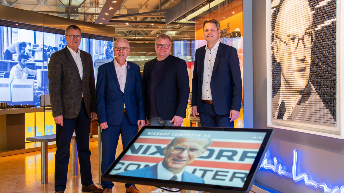 Bild (Sergei Magel, HNF): Freuen sich auf die Veranstaltung zu “Heinz Nixdorf, die Digitalisierung und die Politik”. (V. l.) Bernd Zengerling (Oberst Paderborner Bürger-Schützenverein), Manfred Müller (Vorsitzender Westfalen e. V.) sowie Dr. Jochen Viehoff und Dr. Christian Berg (Geschäftsführer bzw. Bereichsleiter Heinz-Nixdorf MuseumsForum Paderborn)