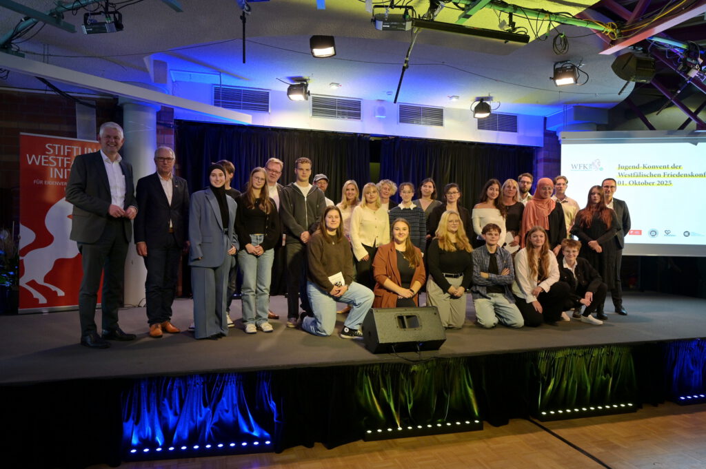 Hamm. Mehr als 220 junge Menschen aus ganz Westfalen sind Anfang Oktober beim zweiten Jugend-Konvent der Westfälischen Friedenskonferenz in die Aula der Sophie-Scholl-Gesamtschule in Hamm zusammengekommen. Die Veranstaltung wurde von der Wirtschaftlichen Gesellschaft für Westfalen-Lippe (WWL) und der Stiftung Westfalen-Initiative für Eigenverantwortung und Gemeinwohl (SWI) in Kooperation mit Westfalen e. V. und weiteren Partnerinnen und Partnern durchgeführt.