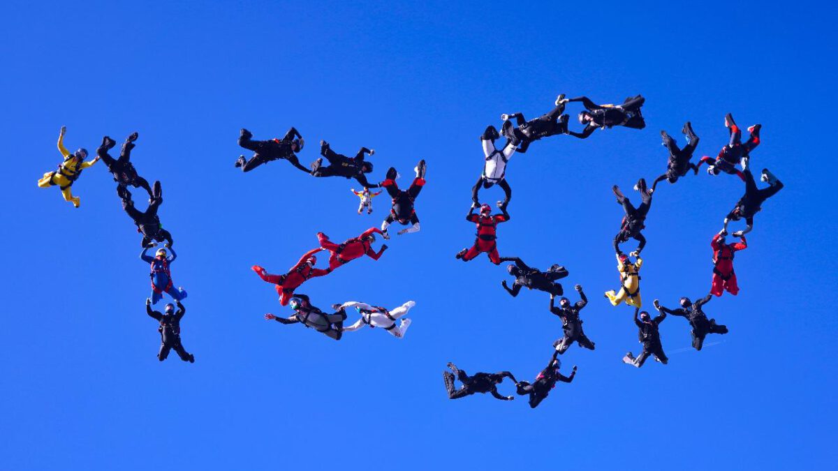 Anderthalb Tage wurde im September auf dem Gelände eines ehemaligen Militärflugplatzes in Soest geübt. Dann stiegen zwei Transportmaschinen mit der Formation in die Luft. Schon beim zweiten Versuch klappt es. Rund 4.000 Meter über der Erde ist die Zahl 1.250 am Himmel zu sehen.