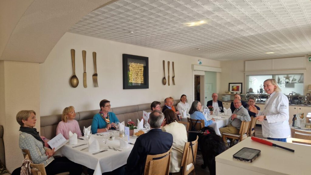 Im Anschluss tauchten die Teilnehmenden im Hotel Hause Griese in die Welt der Schokolade ein. Schokoladen-Sommelière Karin Steinhoff und Chefkoch Meinolf Griese zeigten, wie die Kakaobohne neu interpretiert werden kann und neue Geschmackserlebnisse entstehen. Schokolade wurde hier nicht als Dessert, sondern als raffinierte Komponente im Mittagsimbiss eingesetzt.